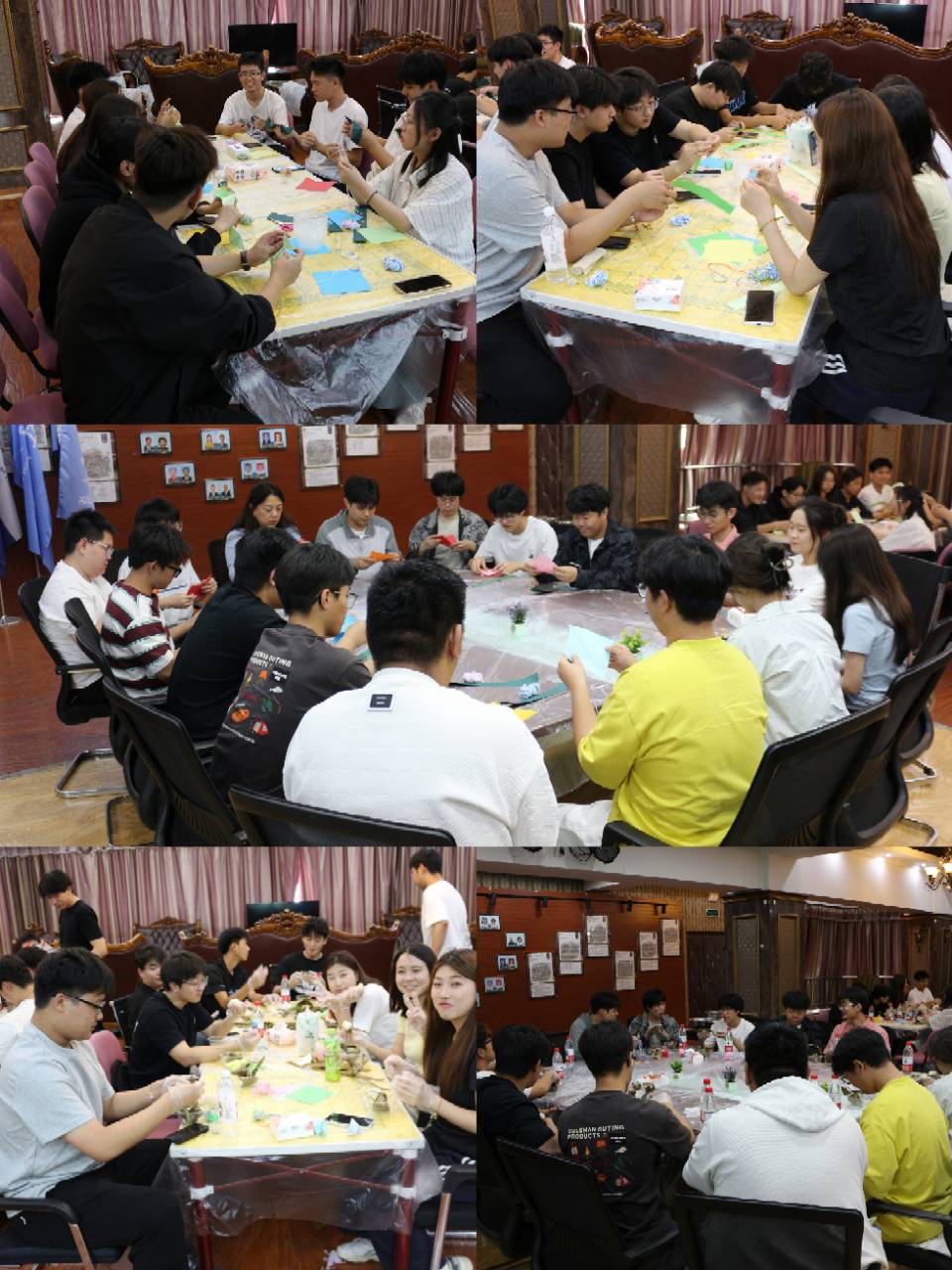 活动在“粽叶飘香”中拉开帷幕。在包纸粽子和纸葫芦环节中,同学们全神贯注地折叠纸张、缠绕丝线,做出属于自己的小粽子,既锻炼了动手实践能力,又深入体验了传统技艺的魅力。在“击鼓传粽”环节中,同学们每一次接力都是心跳的加速,每一次转手都凝结着青春的活力,这传递的不仅是粽子,更是彼此之间的美好祝福。在“粽香共品”环节,师生们一起品尝粽子,感受着粽叶的清香与糯米的甜香交织。最后以一首《蓝莲花》合唱为这场“粽”味十足的活动画上圆满句号。