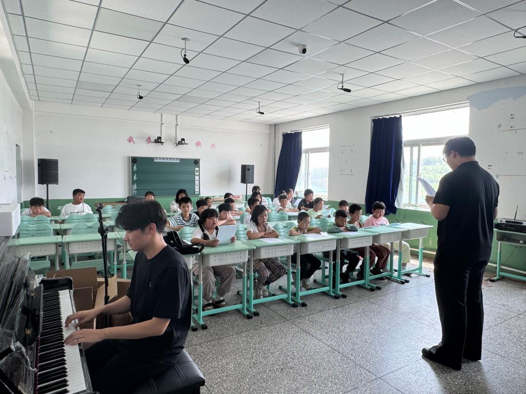 活动伊始,志愿者们以《小小少年》歌曲教学为载体,通过声情并茂的示范演唱,逐句分解的节奏教学和寓教于乐的互动练习,引领孩子们走进音乐的世界。教学过程中,志愿者们不仅耐心地指导每个孩子的发音和气息,更通过讲述歌曲背后的成长故事,帮助孩子们理解歌词中蕴含的积极向上的人生态度。随着教学的深入,孩子们从拘谨地低声跟唱到自信地放声高歌,纯净的童声在教室里回荡,一张张笑脸在阳光下绽放,展现了音乐带来的快乐与成长。