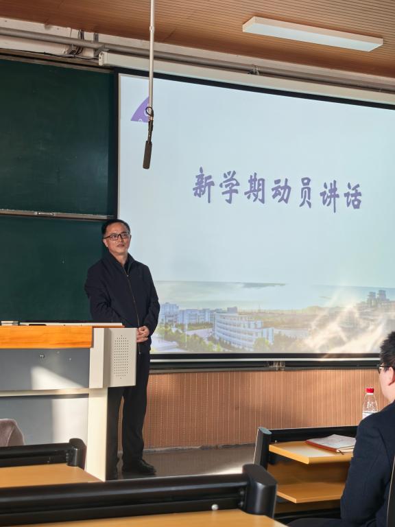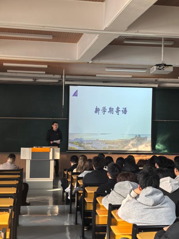 班主任代表邵新峰老师结合新学期课程对同学们做出学习建议。他勉励同学们要进一步端正学习态度,脚踏实地,以求真、务实、创新、奉献为科研精神内核,勇担时代赋予的科技创新重任。